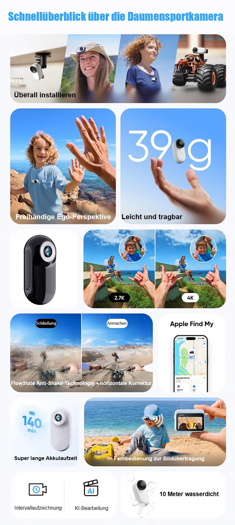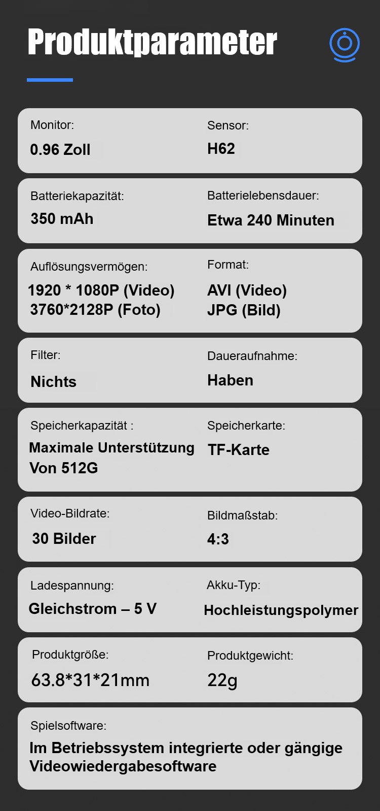 Großbild-HD-Magnet-Daumen-Actionkamera