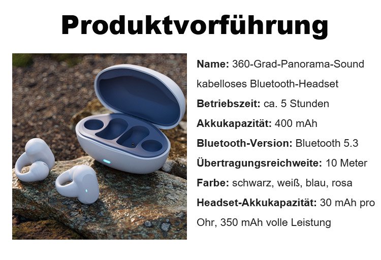 360°-Panorama-Sound-Ohrclip, kabelloses Bluetooth-Headset